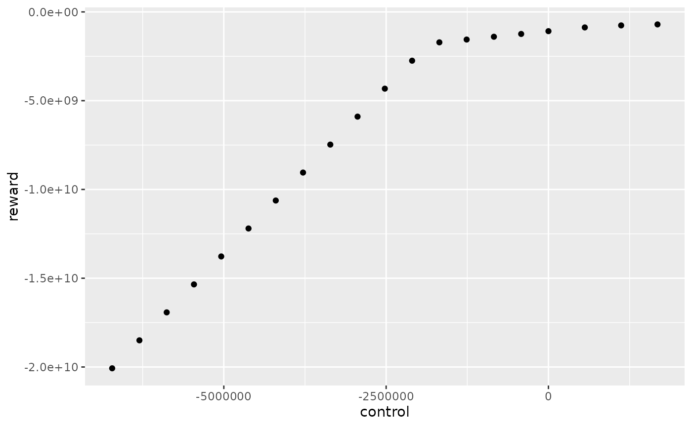 reward_simple <- reward_db$rewardIn this example, with 3 simulations, the reward function for the first week and the first Monte Carlo year has 3 different controls.